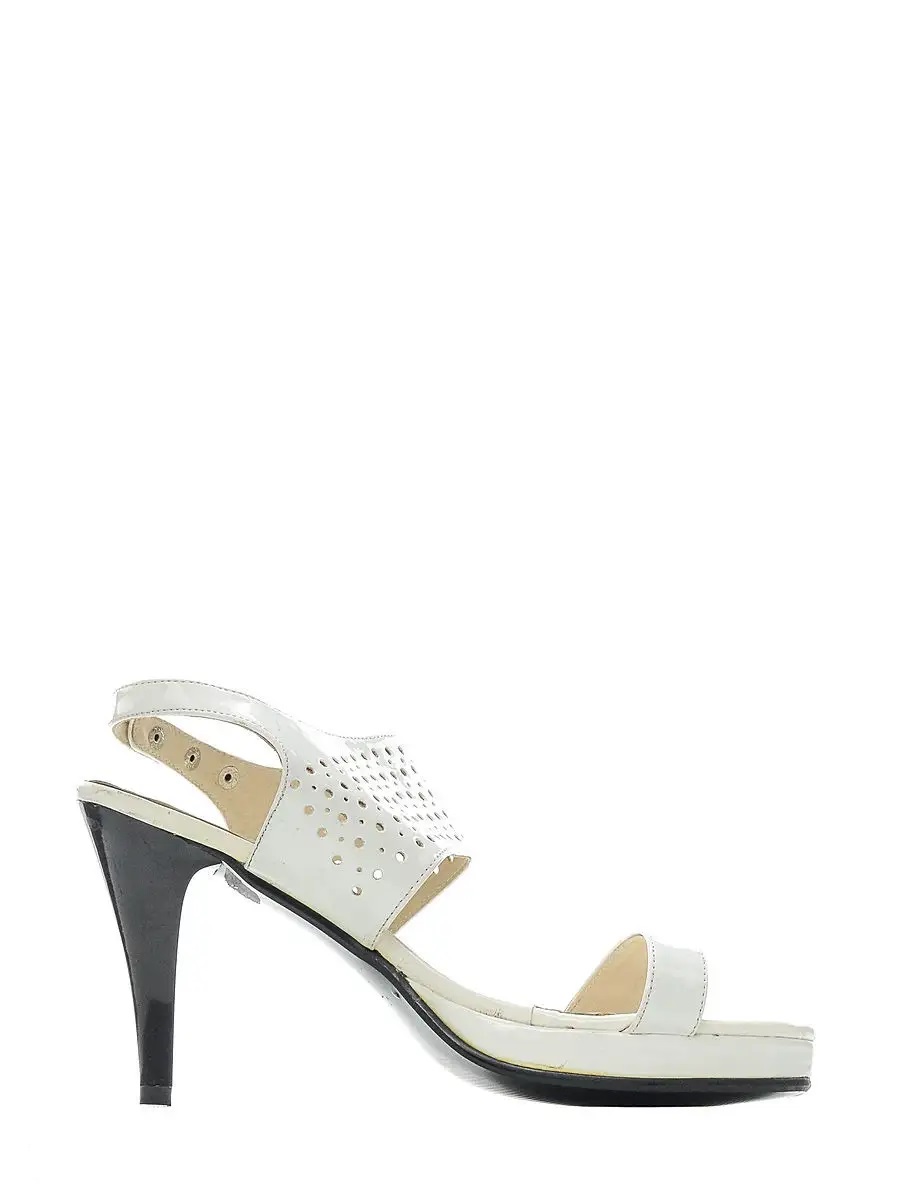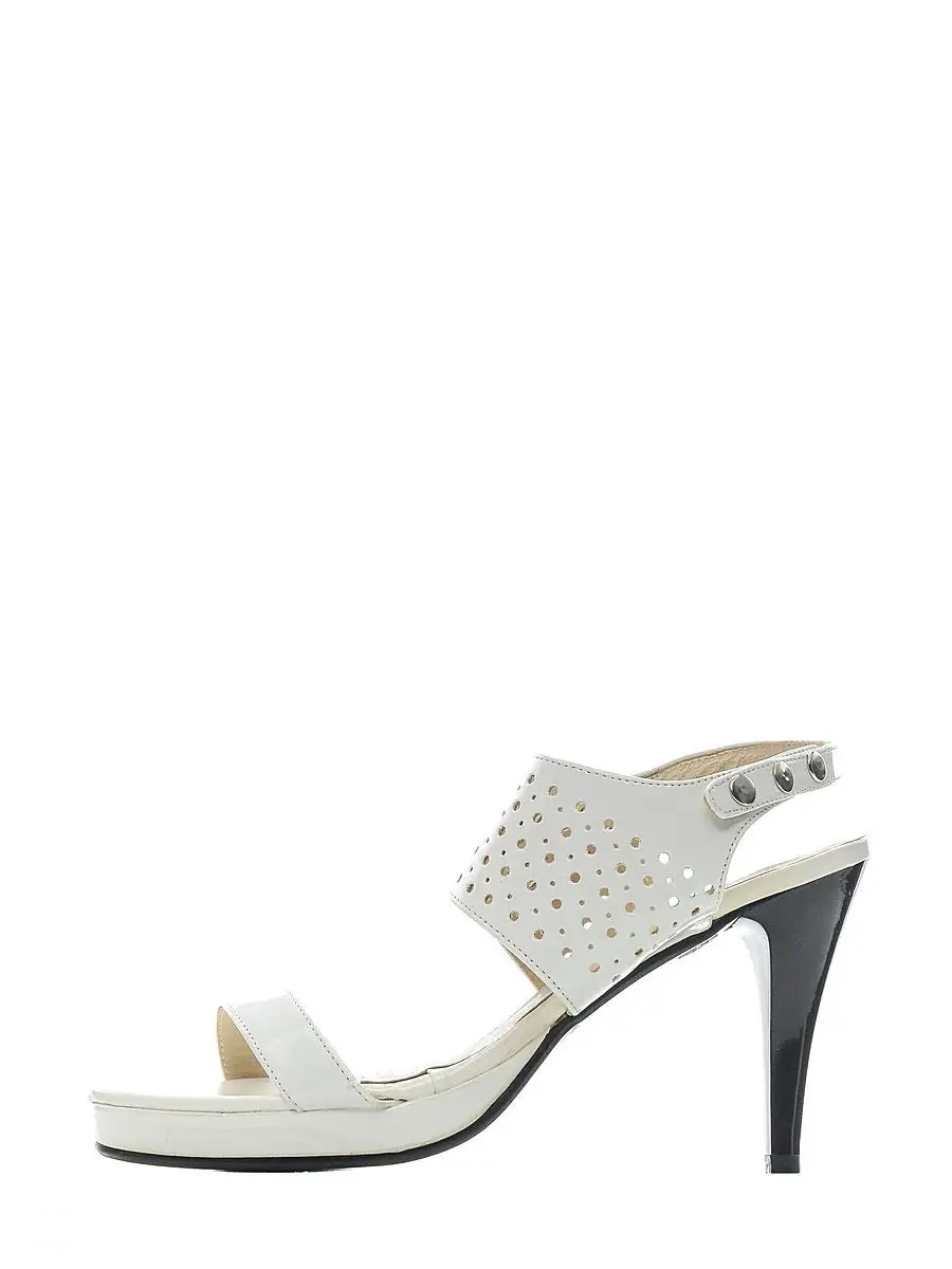 Босоножки женские белые, и/к, застежка на кнопках, каблук 9 см, широкая полнота,ТРИТОН.
