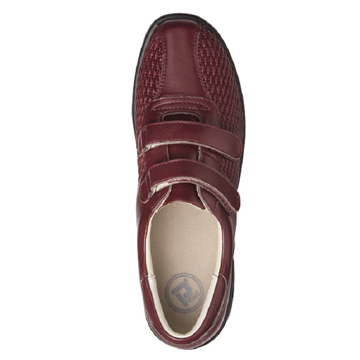 Туфли женские бордовые ортопедические из кожи стрейч для проблемных ног на 2 липучках. Кожаная подкладка, двойная стелька Open Cell. Подошва 2 см, каблук 3,5 см. Длина стельки в 10р.- 27см.; в 11р.- 28 см. На большую полноту W. Обувь импортируется из США. Propet, США.