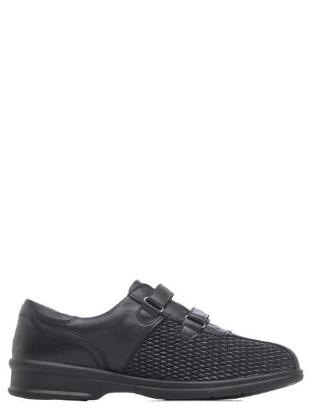 Полуботинки женские черные кожаные.Текстильная подкладка, съемная ортопедическая стелька. Регулируемая застежка на липучке. Подушечка сзади и мягкий язычок. Подходит для отечных ног и диабете. Большая полнота 2Е(Х). Сплошная подошва 2 см, каблук 4 см. Длина стельки в размере 6,5X- 23,5 см, 7,5X-24,5 см,10,5X - 27,5 см. Обувь импортируется из США. PROPET, США.