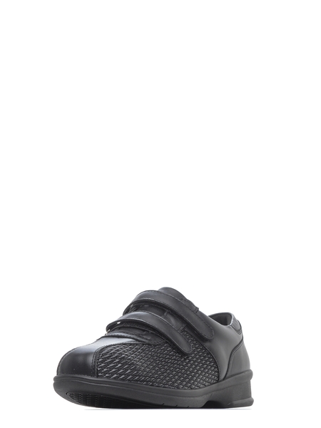 Туфли женские черные ортопедические из кожи стрейч для проблемных ног на 2 липучках. Кожаная подкладка, двойная стелька Open Cell. Подошва 2 см, каблук 3,5 см. Длина стельки в 10р.- 27см.; в 12р.- 28,5 см. На большую полноту W. Обувь импортируется из США. Propet, США.