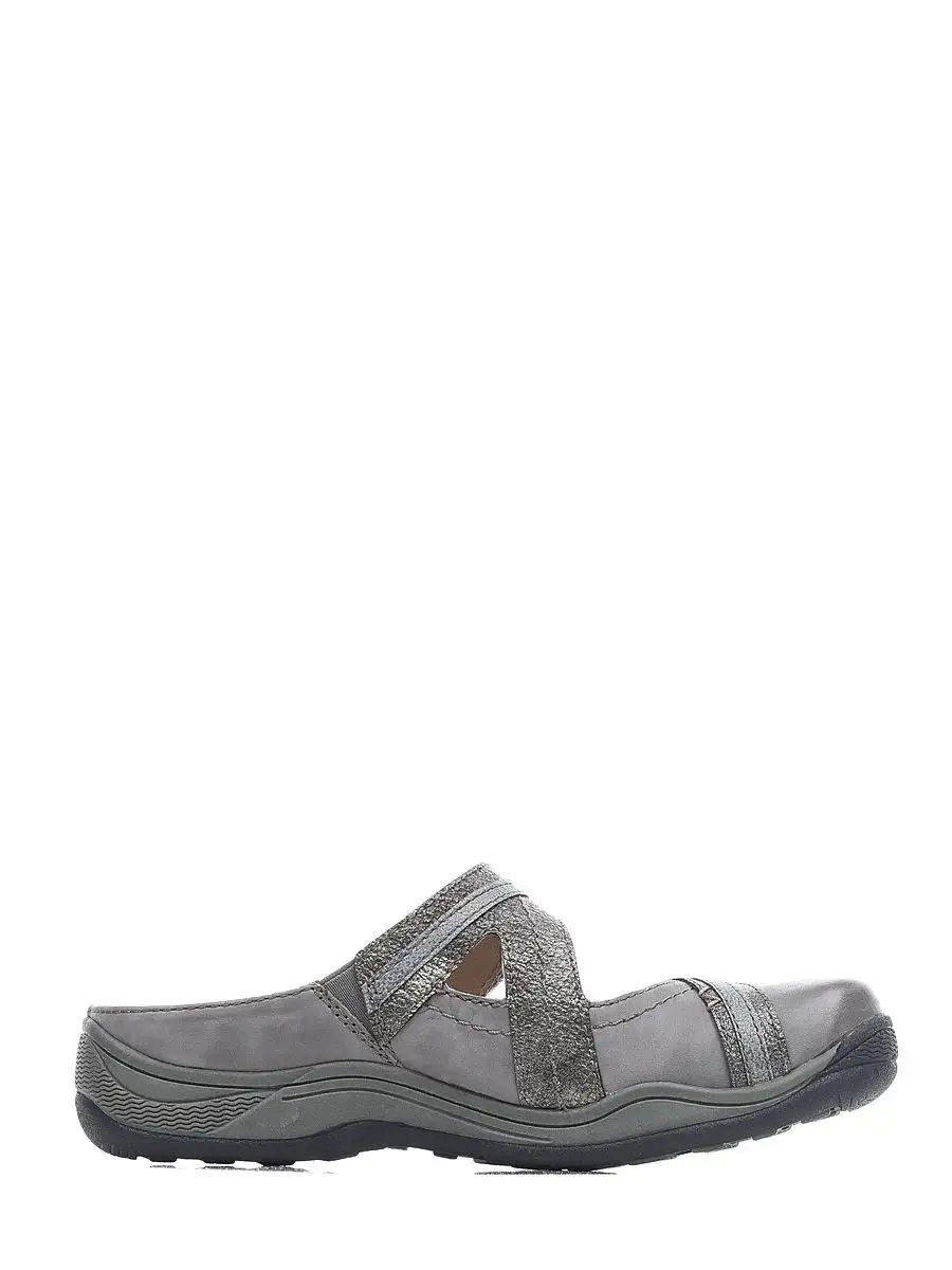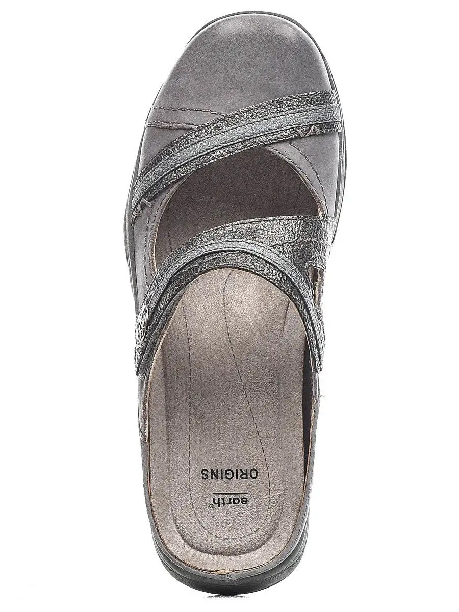 Сабо женские серые из кожи нубук. Текстильная подкладка, съемная стелька с супинатором. Каблук танкетка 3 см. Средняя полнота М. Длина стельки в размере 8М- 25 см. Обувь импортируется из США. Earth, США.