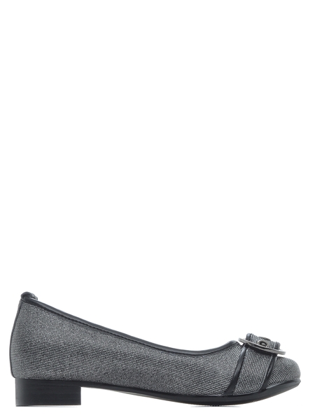 Туфли-балетки текстильные серебристого цвета, подкладка и стелька кожаные, каблук 2 см, ТРИТОН.