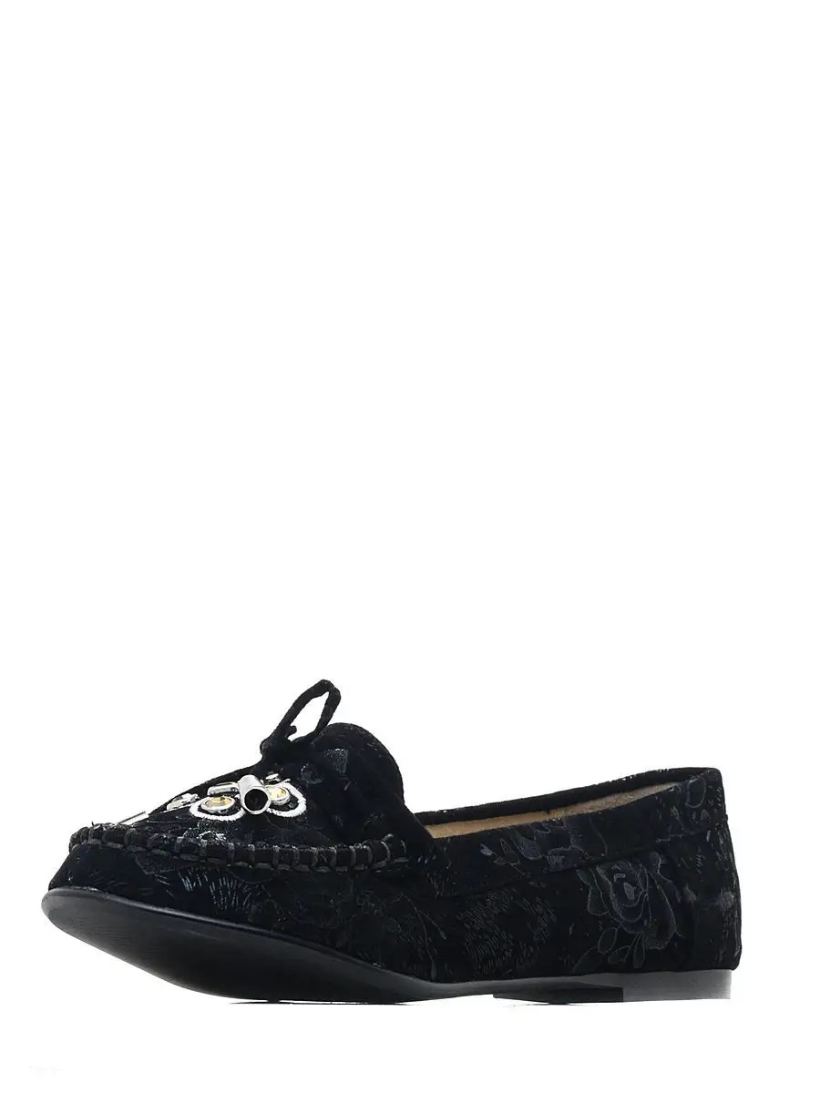 Mокасины женские велюр черные, кожаная подкладка, широкая полнота, ТРИТОН.