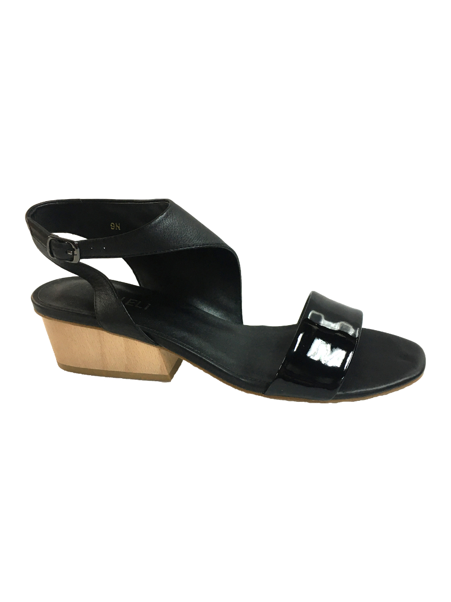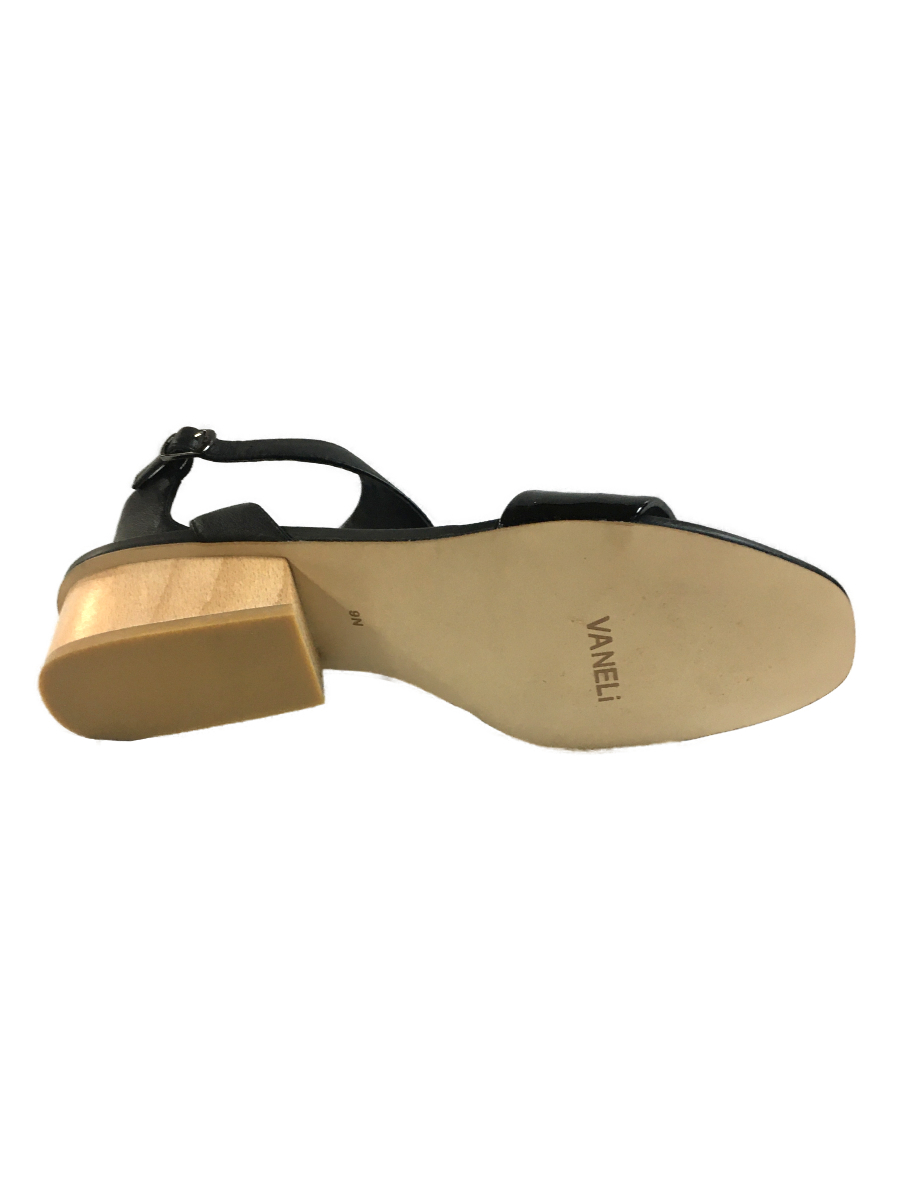 Босоножки женские черные кожаные. Кожаная подкладка и стелька и подошва. При использовании вне помещения кожаная подошва требует профилактики. Застежка на ремешке. Деревянный каблук 4 см. Узкая полнота N. Длина стельки в размере 6- 23 см, в 9- 26 см. Обувь импортируется из США. Vaneli. США.
