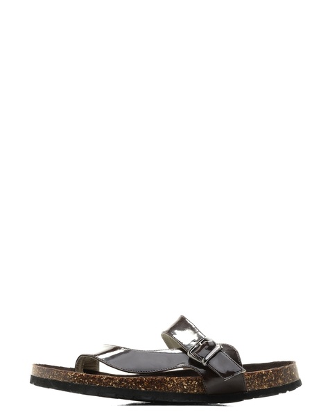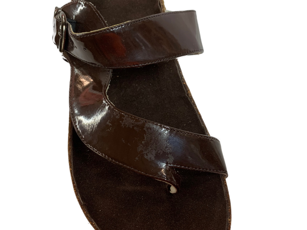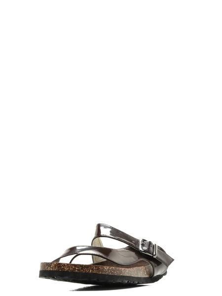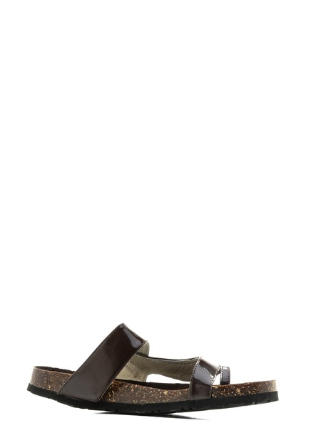 Шлёпанцы женские коричневые, и/кожа лак, пробковая подошва, на полную ногу, ТРИТОН.