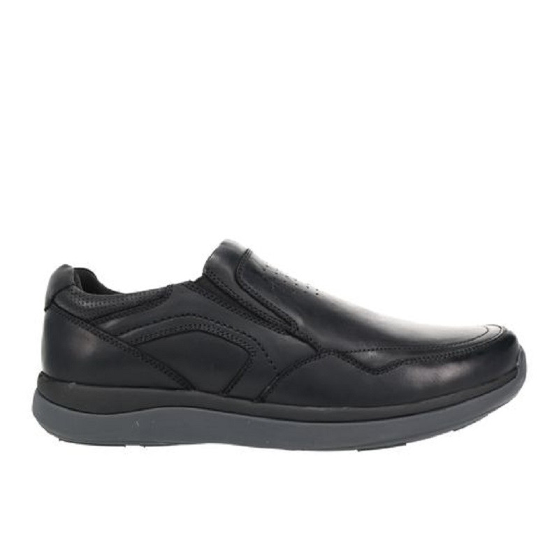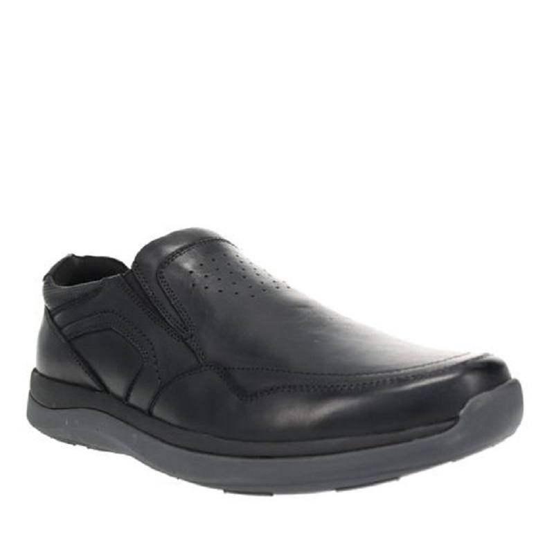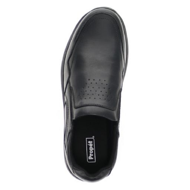Слипоны мужские черные кожаные с текстильной подкладкой. Мягкий задний воротник и язычок. Комфорт достигается с высокоэнергетической пенопластовой стелькой DuroCloud с ортопедическим эффектом. Сплошная резиновая подошва 3 см. Большая полнота 3Е(Х). Длина стельки в размере 12X-30 см, 13Х- 31 см, 14X-32 см, в 15Х- 33 см, в 16X- 33.5 см, в 17X-34 см, в 18X- 35 см. Обувь импортируется из США. Propet, США.
