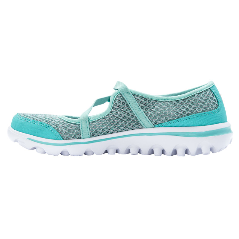 Туфли женские текстильные на липучке. Съемная стелька EVA. Легкая и гибкая подошва EVA TravelTek 1,5 см, каблук 3 см. Увеличенная полнота W. Растягивающийся трикотажный верх с полиуретановыми деталями и эластичным воротником обеспечивает превосходный комфорт для чувствительных ног. Длина стельки в размере 11W- 28см, в 12W- 29 см. Обувь импортируется из США. Propet.США.