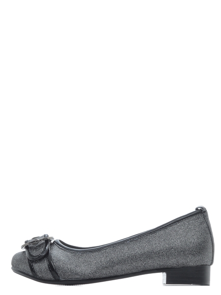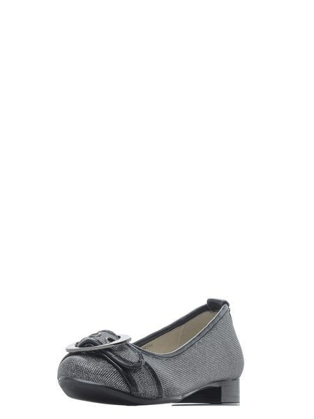Туфли-балетки текстильные серебристого цвета, подкладка и стелька кожаные, каблук 2 см, ТРИТОН.