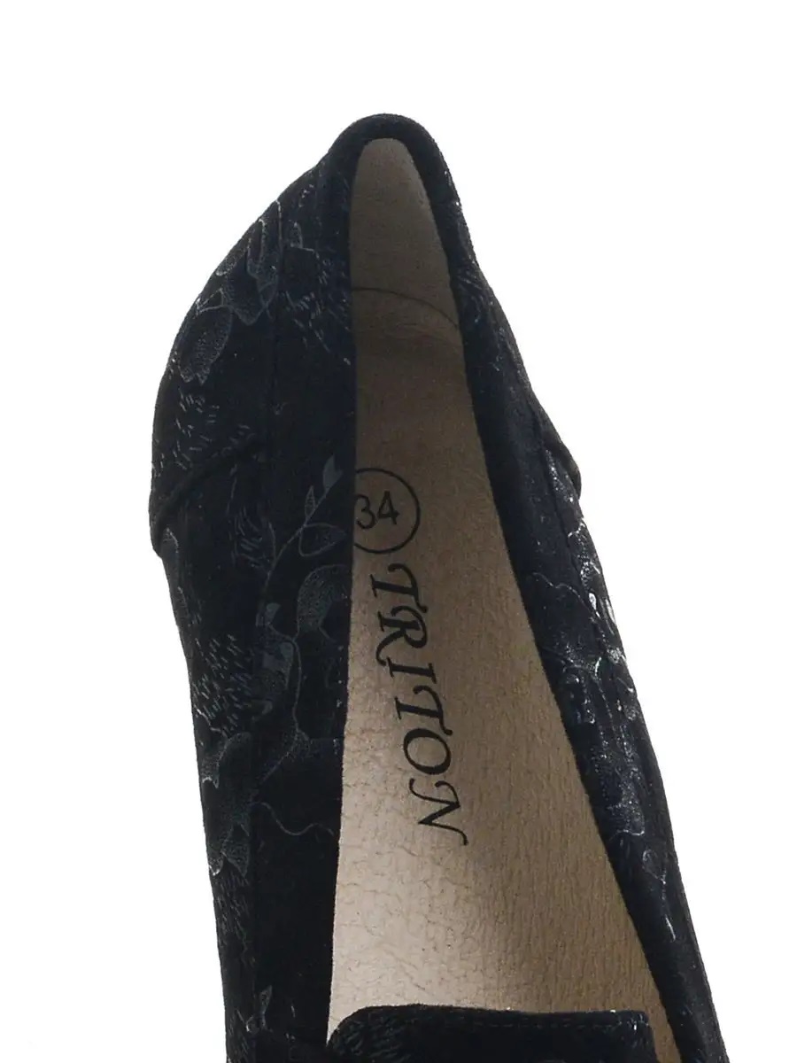 Туфли женские черные комбинированные велюр+кожа, каблук 3 см, Тритон.